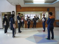 今回は夜間の火災発生を想定し、消防署への通報、待機放送、避難放送、利用者様の避難誘導の訓練をしました。初期消火には消火器と消火栓を用い、利用者様も口を布で覆いながら避難に参加されました。消防署員の方に立ち会いをお願いして貴重な講評をいただきました。どうもありがとうございました。火元には手ぶらで行かないこと。そのためには消火器が設置してある場所を把握しておくことが大切です。通報の仕方や自宅から応援に駆け付けた職員がどのように動けばよいのかなど、新たな課題を検討する良い機会となりました。